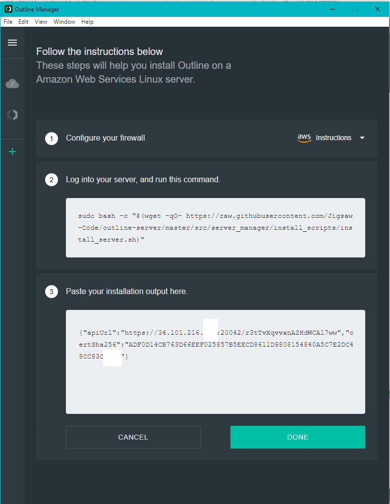 CONGRATULATIONS! Your Outline server is up and running.