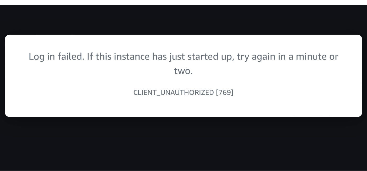 Ada salah satu client saya yang tidak bisa mengakses VM nya di AWS menggunakan web console setelah melakukan upgrade dari Ubuntu 21.10 ke 22.04, Muncul peringatan error CLIENT_UNAUTHORIZED [769] seperti gambar di bawah