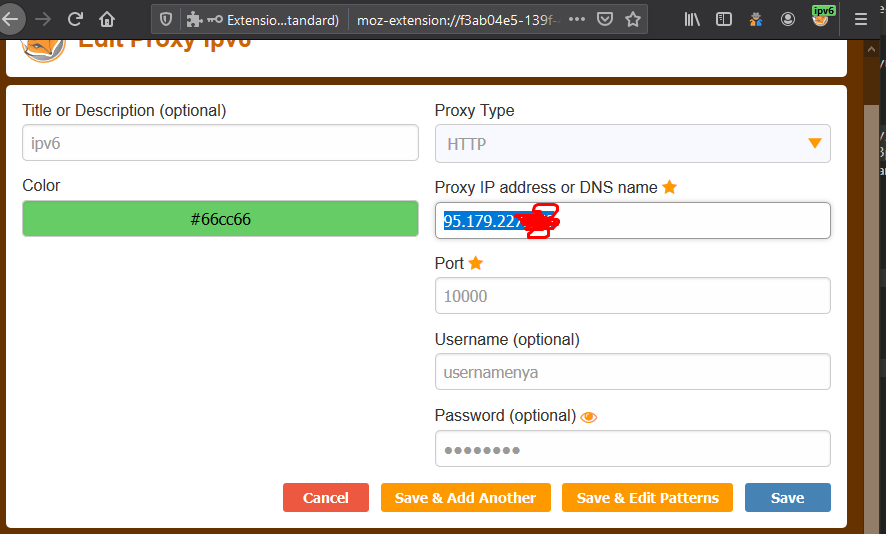 Cukup dengan mengganti port proxynya dan nanti akan otomatis berganti IPv6 nya
