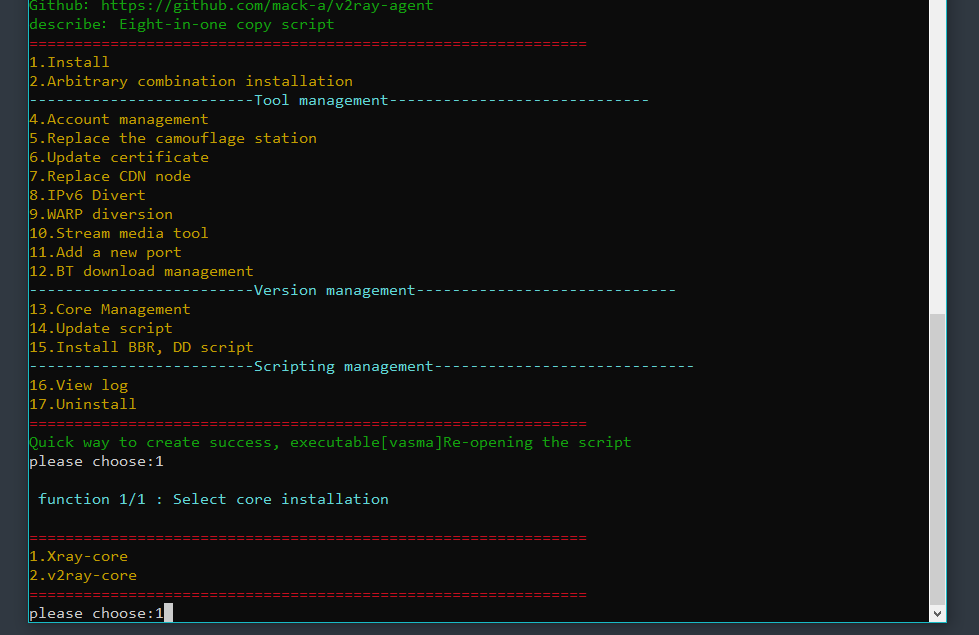 Selanjutnya adalah memilih core yang akan kita gunakan, saya disini memilih xray menggunakan